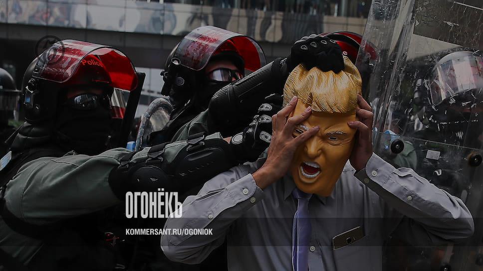 В ходе протестов в Гонконге досталось и замаскированному под президента США манифестанту