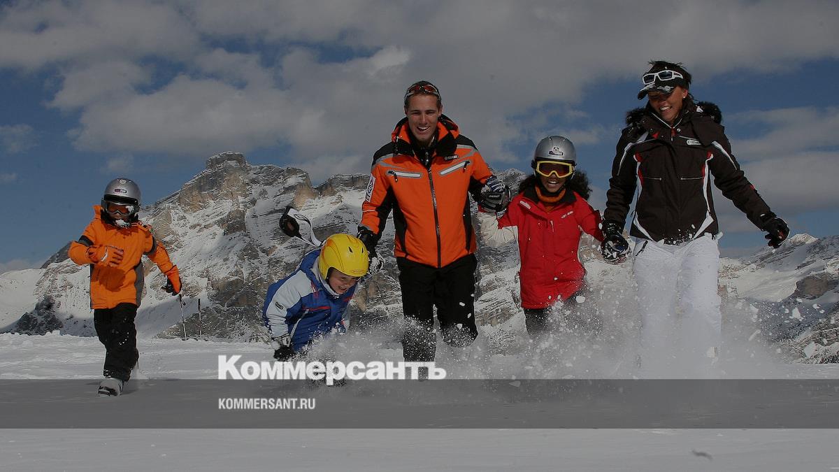 Семья горнолыжников в Доломитах