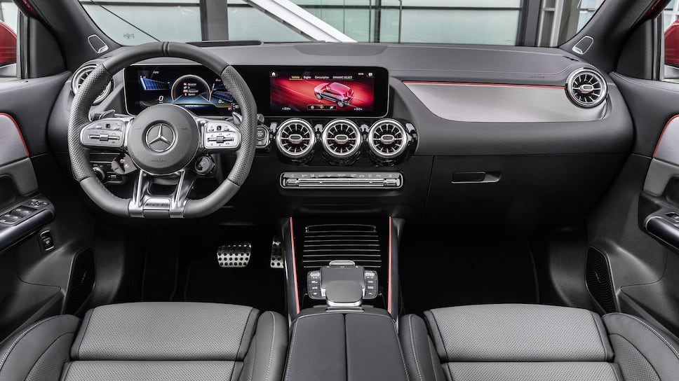 Mercedes-AMG GLA 35 доступен только с полным приводом. От базовых версий новинка отличается доработанной подвеской, усиленными тормозами, а также особым декором кузова (бампера, решетка радиатора) и салона (появились спортивный руль и сиденья, фирменное оформление цифровой панели приборов).