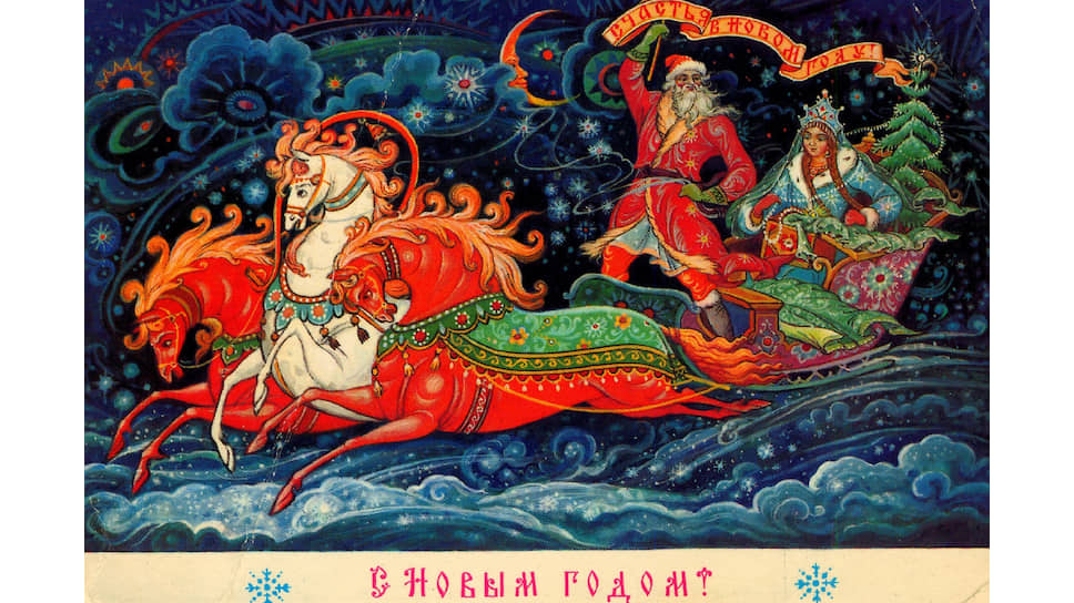 Советская новогодняя поздравительная открытка. Художник Е. Гундобин, 1962 год