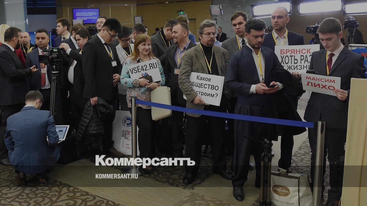 «Просьба во время пресс-конференции не использовать плакаты размером более формата А3 (297х420 мм), так как это мешает работе фотографов и операторов»,— приводит «РИА Новости» сообщение департамента аккредитации и брифингов пресс-службы президента. Оно пришло всем аккредитованным на мероприятие журналистам. В этом году на пресс-конференцию аккредитовано рекордное количество журналистов — 1895. В прошлом году их было 1702.