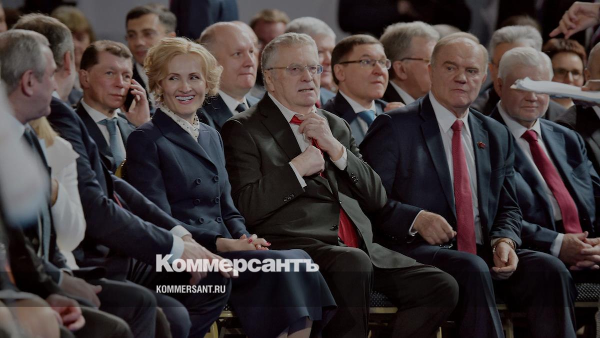 Слева направо: зампредседателя Госдумы Ирина Яровая, лидер ЛДПР Владимир Жириновский, лидер КПРФ Геннадий Зюганов и руководитель фракции «Справедливая Россия» Сергей Миронов во время оглашения послания