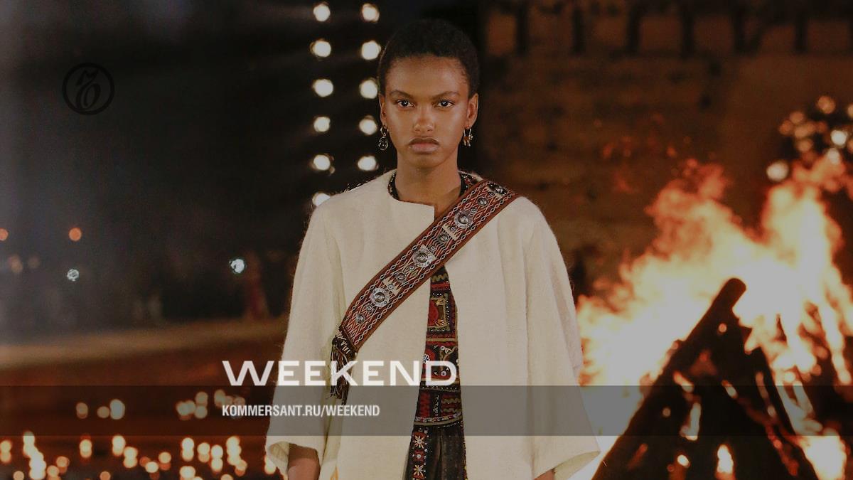 Это и дань памяти Иву Сен-Лорану, возглавлявшему модный дом после смерти Кристиана Диора, и поддержка национальных мастерских и техник работы с тканью, и напоминание о мультикультурализме. В коллекции есть вещи, прямо напоминающие знаменитое «марокканское пальто» 1960 года: накидки с бахромой, платья-джелабы и пальто-бурнусы, костюмы в духе сафари. Но главное, пожалуй, это сложнейшее и виртуозное сочетание старинных французских техник работы с тканью, с техниками, характерными для Северной Африки. Мария Грация Кьюри уже несколько сезонов подряд использует принты и жаккарды Toile de Jouy — с мелкими и подробными графическими рисунками, в своем классическом варианте изображающими пасторальные и мифологические сцены, а у обновленного Christian Dior — экзотических зверей в джунглях. Но на этот раз «туаль де жуи» сочетается со сложной техникой горячего батика с многоцветными рисунками. Для этого ткани окрашиваются в разные цвета многократно, а все, что не должно в этот раз подвергнуться окраске, защищается расплавленным воском. Это очень трудоемкая, очень красивая и всегда дающая немного разные результаты древняя техника окраски тканей. Для Christian Dior ее выполняли в ателье Uniwax в городе Абиджан, в Кот-д-Ивуаре. Это не все. Многие ткани созданы в Марокко в традиционной технике, барные жакеты расшиты рафией, а дизайнер Мсье Пате-О, шивший рубашки Нельсону Манделе, разработал вещи с его портретом на спине. То есть это реальная поддержка национальных мануфактур, а не игра в мультикультурализм.