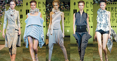 Еще пару лет назад практически все устраиваемые в Москве дефиле западных марок демонстрировали нам одежду текущего сезона. Что на витрине, то и на подиуме. Ситуация изменилась, вот тому пример — в начале октября коллекция Trend Les Copains "весна-лето 2004" была показана в рамках миланской недели pret-a-porter, а в конце месяца ее уже можно было увидеть в Москве, на подиуме "Крокус Сити Молла". Все без халтуры: "язык" был покрыт специально привезенной из Италии живой травой, арка сцены и декоративные ширмы увиты розами, и главное, что сама коллекция была представлена без купюр.Trend Les Copains в Москве известна как хорошая крепкая марка, ориентированная на обеспеченных женщин, делающих карьеру в области хотя интеллектуального, но все-таки бизнеса. То есть банкиршам и государственным служащим стоит выглядеть официальнее, и, с другой стороны, работать в художественной галерее можно в более концептуальной одежде. А вот, к примеру, для тех, кто занимается книгоиздательством, одежда от Les Copains в самый раз.
