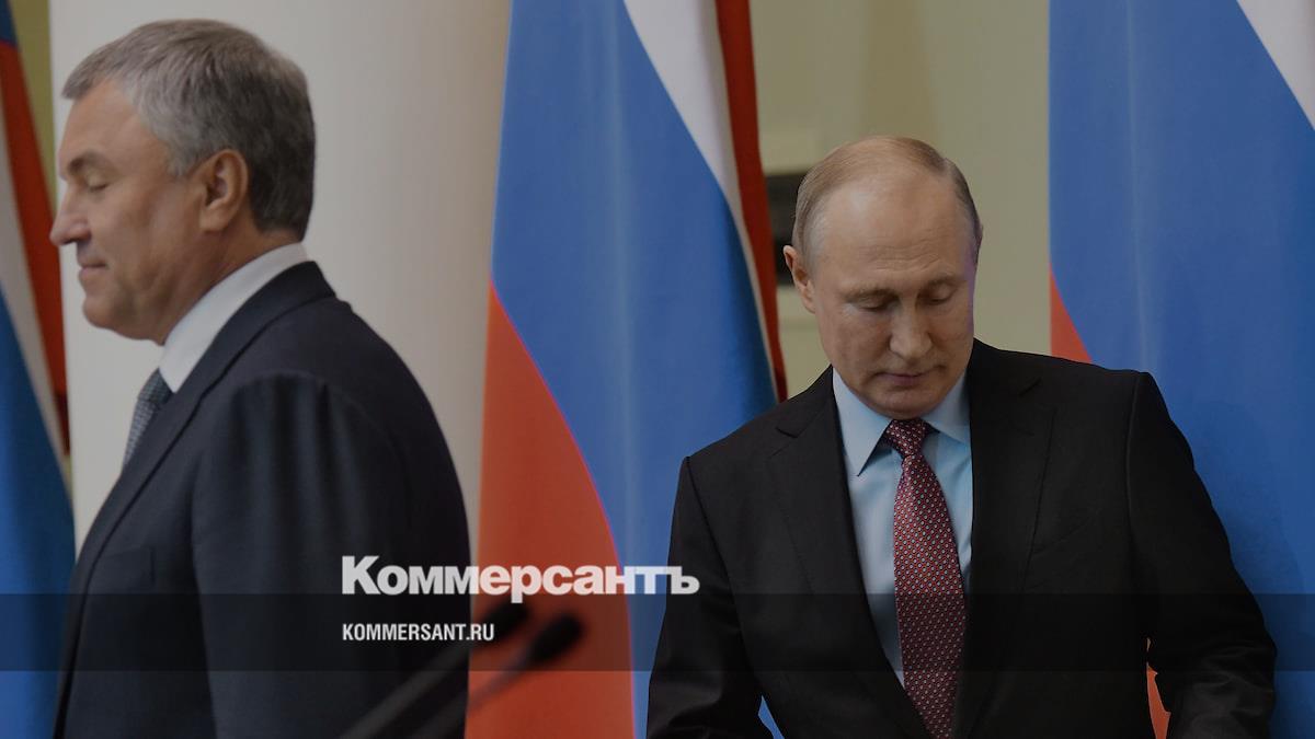 Председатель Госдумы Вячеслав Володин (слева) и президент России Владимир Путин