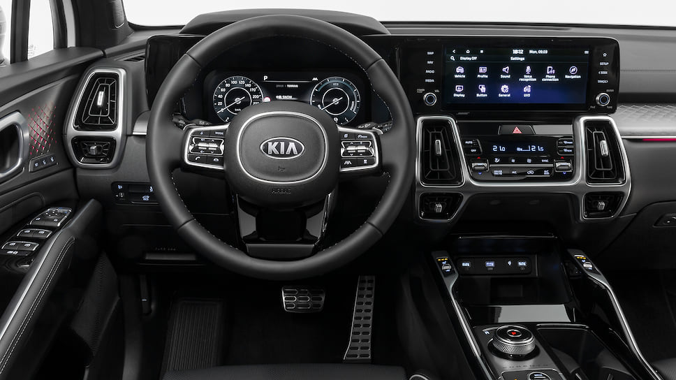 У кроссовера целиком переработан салон, в котором появились 12,3-дюймовая цифровая панель приборов, мультимедийная система с 10,25-дюймовым тачскрином, отдельный экран для управления климат-контролем, при этом традиционный рычаг коробки передач заменен вращающимся селектором. В оснащение Sorento вошла центральная подушка безопасности и возможность трансляции изображений с системы кругового обзора на смартфон водителя.