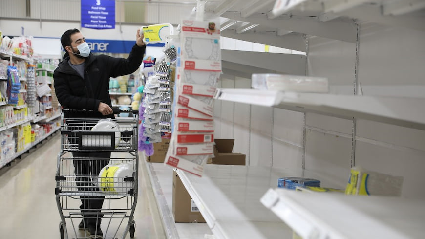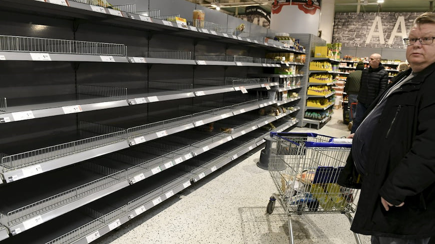 На прошлой неделе в магазинах были пустые полки. Народ, как сумасшедший, все скупал, хотя за ночь все завозилось снова. Кабинет министров заявил о введении госгарантий на базовый набор продуктов, чтобы люди не сходили с ума. Все супермаркеты крупные говорят, что у них гарантированно всегда есть 500 базовых продуктов.