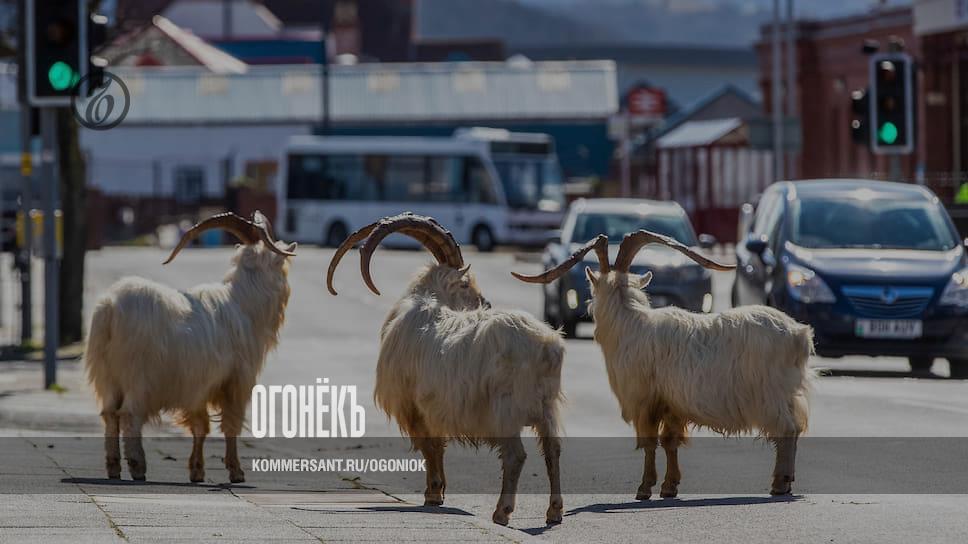 Дикие козы на улицах Лландидно (Великобритания)