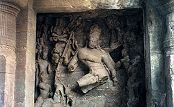 | Каменные изваяния танцующего Шивы, даже лишившегося ног, привлекают туристов в пещерный храмовый комплекс Элефанта неподалеку от Мумбая |