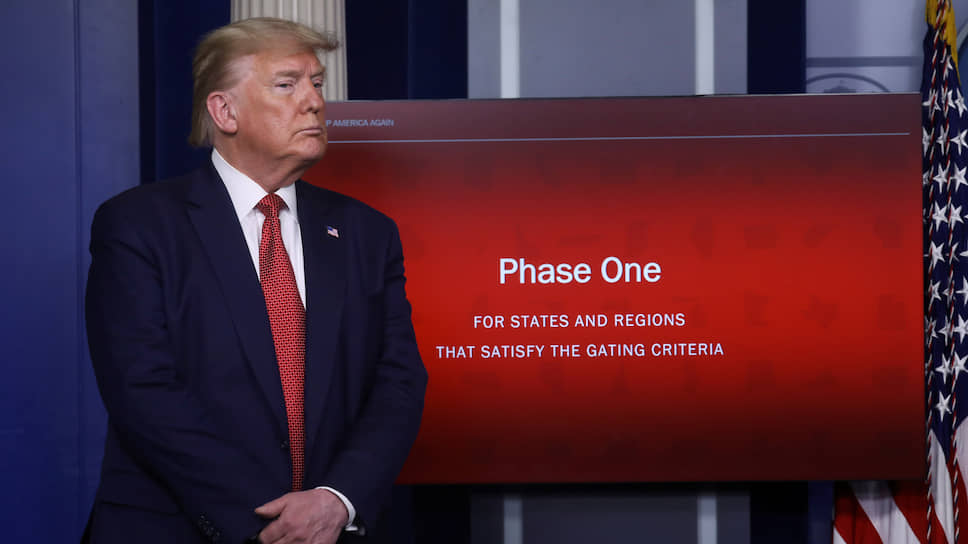 «Основываясь на последних данных, наша команда экспертов согласилась, что мы можем перейти к следующему этапу в этой войне, который мы называем "Снова открыть Америку". И именно это мы и делаем. Мы открываем нашу страну»,— объявил Дональд Трамп. Президент США уточнил, что снимать карантин будут «шаг за шагом», и если какие-то штаты к этому не готовы, то они вправе не отменять ограничения. «Если им нужно оставаться закрытыми, мы позволим им сделать это. Если они считают, что пришло время снова открыть границы, мы предоставим им свободу для выполнения этой задачи»,— пояснил он (цитата по AFP).