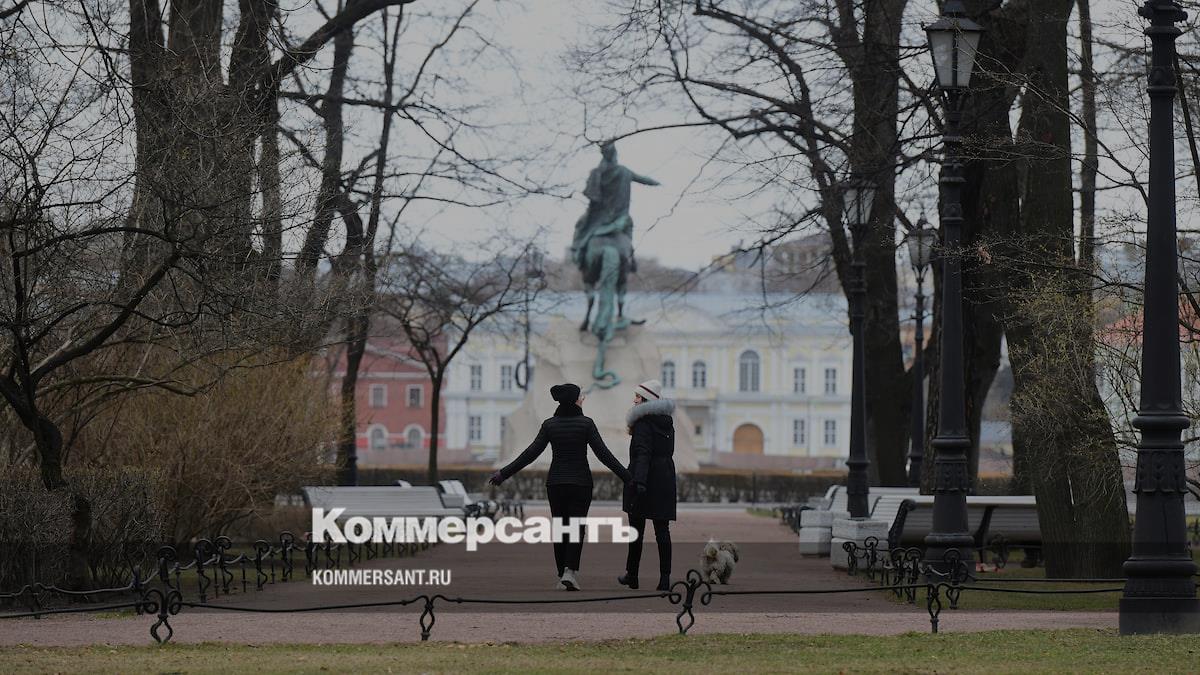 Девушки в парке у Сенатской площади в Санкт-Петербурге во время прогулки в апреле 2020 года
