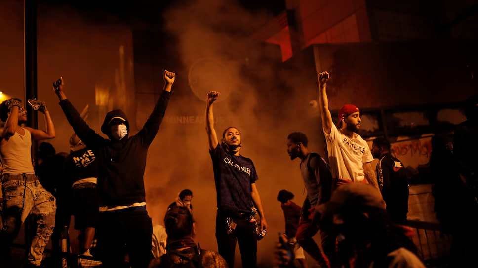 «Сотни демонстрантов вернулись в четверг в район Миннеаполиса, в центр насилия, где ночью происходящее было чем-то средним между гневным протестом и уличной вечеринкой. В какой-то момент музыкальная группа, играющая на стоянке напротив 3-го участка полиции — эпицентра внимания участников протестов, начала играть панк-версию ''Песни искупления'' (Redemption song) Боба Марли (с призывом ''освободить себя от ментального рабства'', потому что ''никто, кроме нас самих, не может освободить наши умы''.— “Ъ”). Неподалеку демонстранты несли манекены из разграбленного магазина Target и бросали их в горящий автомобиль. Позднее рядом вспыхнул пожар»,— описывает происходящее издание Politico. В ходе ночных беспорядков были зафиксированы десятки поджогов (в том числе здания отделения полиции) и случаев разграбления магазинов. «Они просто наживаются на нас»,— пояснял участник протеста, представившийся как Кэш, изданию Politico мотивы тех, кто громил магазины.
