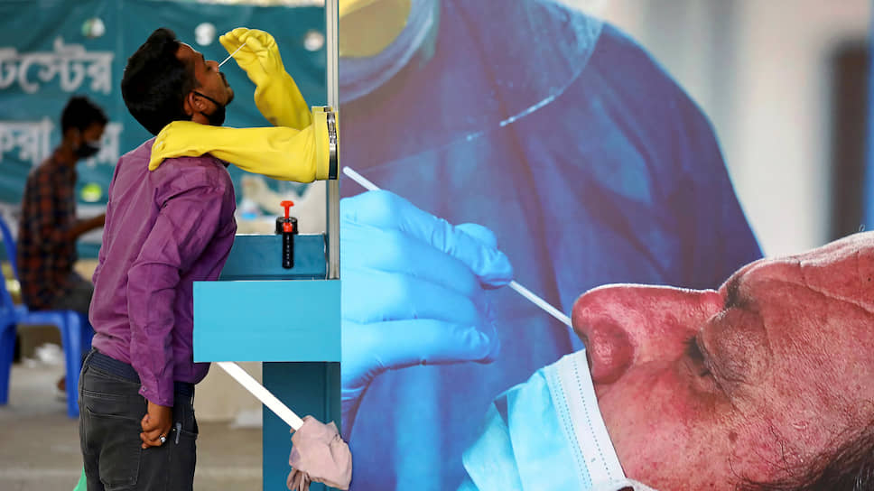 Тестирование на коронавирус в Бангладеш, выступление акробата в Швейцарии и другие кадры — в фотогалерее “Ъ”.