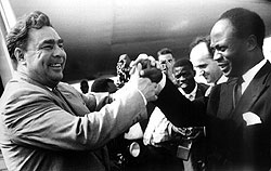 Щедрые дары чаще всего помогали успеху визитов, но проблема заключалась в другом: подарочный фонд Совета министров СССР чаще всего оскудевал к лету, а иногда уже весной. Как вспоминал один из ветеранов власти, тяжелой головной болью была не только нехватка ценностей, но и выбор неповторяющихся подарков для одних и тех же государственных деятелей. А Хрущев посещал многие страны не по одному разу. "Хрущев любил делать иностранцам дорогие подарки,— рассказывал ветеран,— причем без разбора. Когда наши самолеты и машины дарили африканским лидерам, это вызывало восторг. А американцы от наших 'Москвичей' умирали со смеху. Помню, встал вопрос об очередном подарке афганскому королю. Машины ему дарили, самолет дарили. Что дать теперь? Кто-то предложил: 'А если паровоз?' Все одобрили. А потом вспомнили, что в Афганистане нет железных дорог".