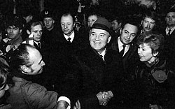 Возможно, стереотип поведения "понравился за рубежом — победил противников внутри страны" сложился у Горбачева еще в период борьбы за кресло генсека. "В декабре 1984 года,— вспоминал Александр Яковлев,— состоялась поездка Михаила Сергеевича в Англию и его очень удачная встреча с Тэтчер. Я присутствовал на его встрече с Тэтчер в узком составе и видел, как агрессивность 'железной леди' сменилась более чем вежливым вниманием. Это был успех и сигнал для советского руководства, что есть человек, принимаемый Западом и способный говорить с ним на равных. Успех встречи с Тэтчер был предопределен другой поездкой Горбачева. Первым западным политиком, который с симпатией отнесся к Горбачеву, была не Тэтчер, а канадский премьер Трюдо. Михаил Сергеевич приезжал в Канаду, когда я был там послом. Своим свободным поведением он поразил канадских руководителей. Горбачеву удавалось совмещать раскованность с аккуратностью. Говорит вроде как интересно-интересно, а как попробуешь сделать запись беседы, как это принято в дипломатической практике, в ней — ничего, кроме, может быть, одной ключевой фразы, ради которой он вел весь разговор. И я точно знаю, что Трюдо не раз говорил руководителям других стран, что на Горбачева следует обратить внимание. А тут растаяла сама Тэтчер".