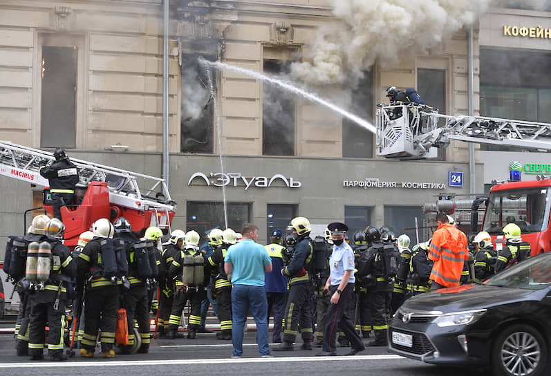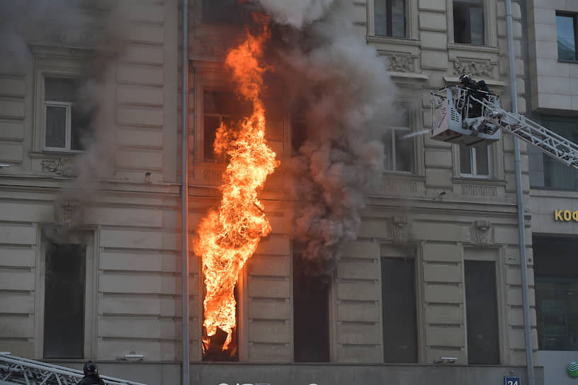 Движение по Тверской улице в центре Москвы перекрыто в обе стороны из-за пожара в доме №24, сообщает Центр организации дорожного движения (ЦОДД). Там горит жилой дом постройки конца XIX века. Здание находится на реконструкции. Возгорание локализовано на площади 800 кв.м. Информации о пострадавших не поступало.