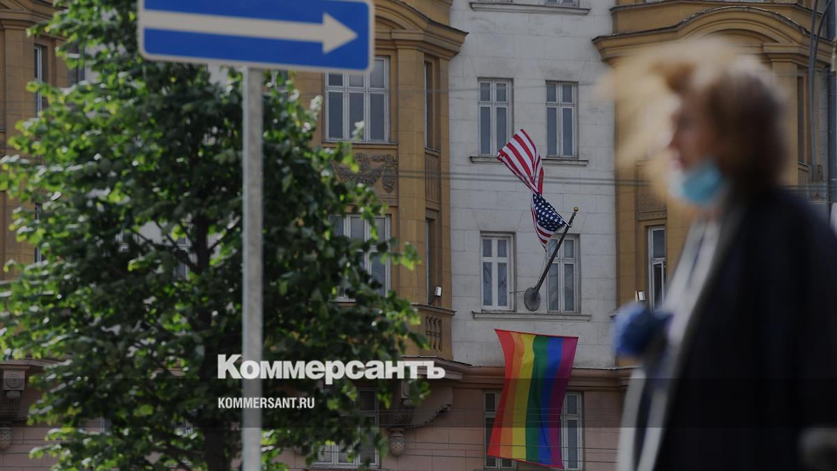 Радужный флаг на здании посольства США в Москве