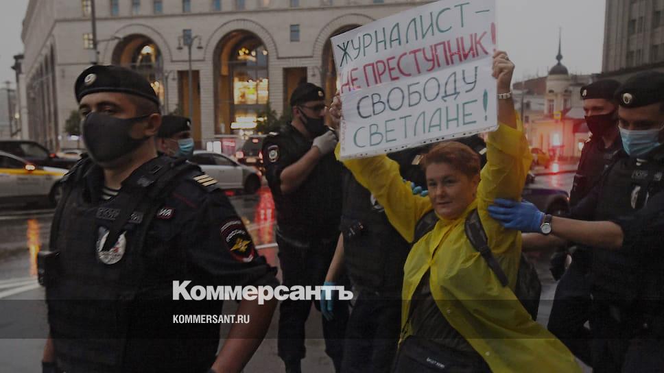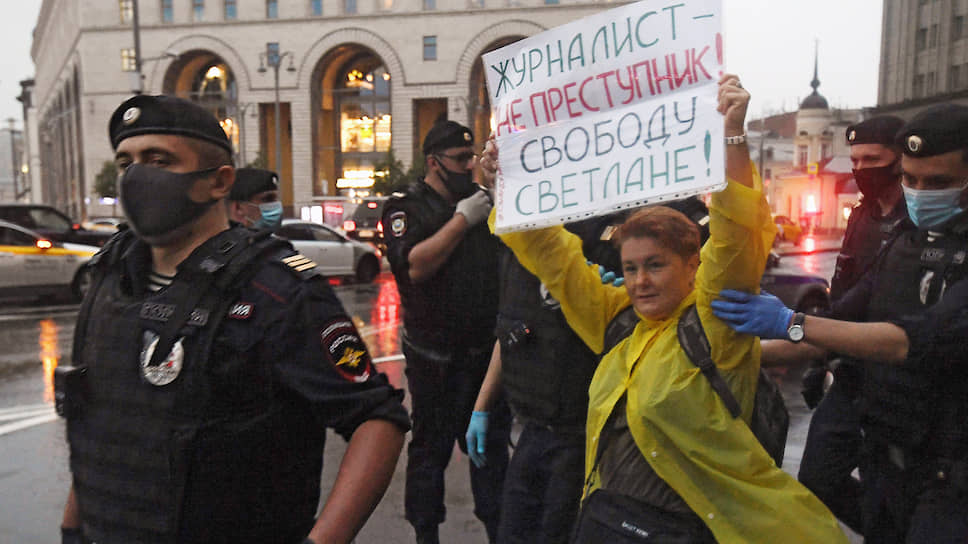 В пятницу прокуратура потребовала шесть лет колонии для псковской журналистки Светланы Прокопьевой, обвиняемой в оправдании терроризма — и уже через несколько часов московские журналисты вышли протестовать к зданию ФСБ. Пикетчиков не остановил ливень, но акция все равно продлилась не более получаса. Журналистов, блогеров и обычных граждан задерживали, как только они разворачивали плакаты или даже просто начинали давать интервью. В ОВД Замоскворечье увезли 17 человек.