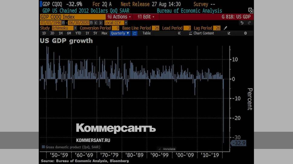 «Снижение ВВП во втором квартале отразило реакцию на COVID-19, так как в марте и апреле в некоторых районах страны был частично отменен режим изоляции, объявленный в марте и апреле, а правительственные платежи в качестве пандемической помощи были направлены домашним хозяйствам и предприятиям»,— говорится в сообщении Минторга США. Аналитики Reuters прогнозировали падении ВВП страны до 34,1%.