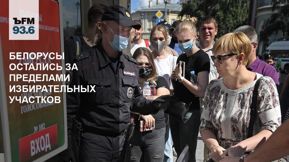 В Москве незадолго до завершения работы избирательных участков к посольству Белоруссии прибыли полицейские. В итоге никаких беспорядков не было, и вскоре люди покинули улицы, рассказал корреспондент “Ъ FM” Петр Пархоменко: «Не успели проголосовать тысячи людей. По состоянию примерно на 7 часов, их было около 6 тыс. В общем, можно предположить, что несколько сотен за час все-таки успело проголосовать, но это максимум, а остальные нет. Я разговаривал с мужчиной, который стоял с полудня и не попал на участок. Сразу после закрытия участка люди не стали расходиться, они достали паспорта, подняли их над головами, скандировали: "Хочу отдать голос!". "Лукашенко, уходи!".