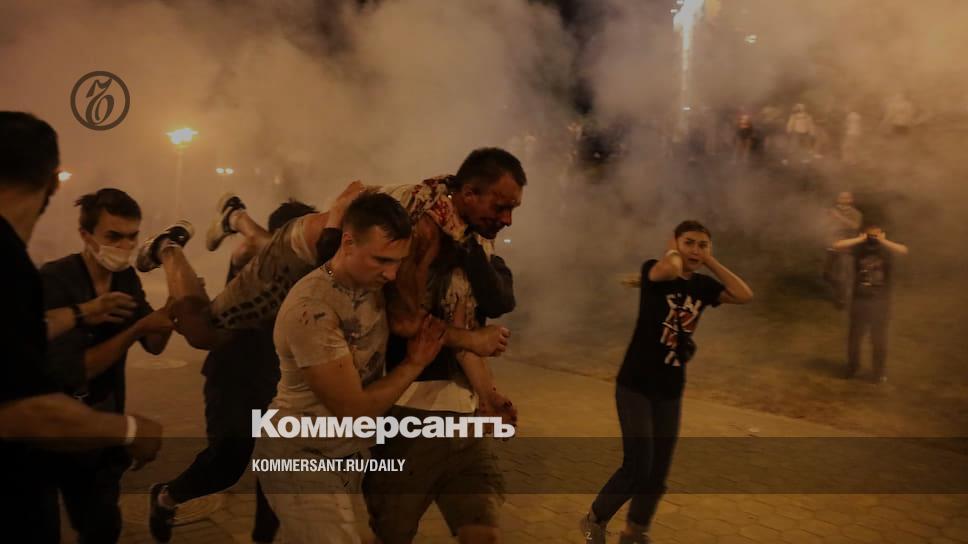 В Минске пострадали двое журналистов. Избитого оператора Associated Press Мстислава Чернова, по данным штаба Светланы Тихановской, отвезли в больницу. Корреспондента «МБХ медиа» Александра Скрыльникова задела светошумовая граната