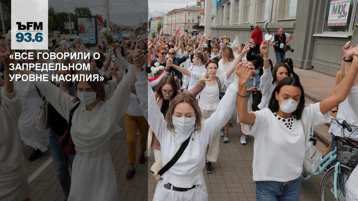 — На акцию у Комаровского рынка, куда стихийно вышли женщины, их было действительно много, они были с цветами, в белой одежде, и они все говорили о запредельном уровне насилия. У многих из них кто-то либо пострадал, либо был арестован, задержан, и о некоторых ничего неизвестно. После этой акции я поехал к изолятору на улице Окрестина — это знаменитый уже довольно много лет белорусский изолятор, потому что туда всегда доставляют людей, и сейчас это место боли. У ворот этого изолятора несколько сотен человек дежурят уже не первый день, пытаются что-то выяснить, узнать хоть какую-то информацию о судьбе своих близких, братьев, сыновей, дочерей, мужей и так далее. Но никакой информации им не предоставляют. Периодически в ворота изолятора въезжают – выезжают автозаки. Собравшиеся убеждены, что в автозаках, когда они выезжают с этой территории, перевозят в другие места тех, кого осудили на 10 или 15 суток прямо в изоляторе, они говорили мне, что в изолятор приезжают судьи. И когда выезжают автозаки, люди хлопают, говорят «держитесь», и сыплют проклятьями в адрес силовиков, проявляющих в эти дни жестокость.