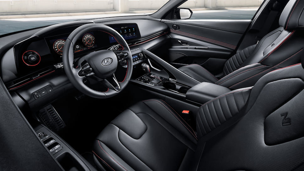 В салоне Elantra N Line появились спортивные сиденья, новый 3-спицевый спортивный руль, красная прострочка обивки сидений и другие аксессуары. Напомним, премьера нового поколения седана Hyundai Elantra состоялась в марте 2020 года.