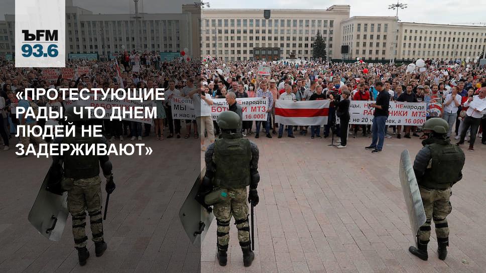 — Люди говорят примерно одно и то же: да, нас сегодня не трогают, но это пока, подождите вечера, неизвестно, что будет, будут ли разгонять людей так же, как делали это последние два-три дня, либо же все это перерастет в нечто иное. Протестующие рады, что днем людей не задерживают, не выцепляют во дворах, не бьют, но не то, чтобы все расслабились. То есть все смотрят по сторонам и как будто ждут, что вот-вот на площадь зайдут омоновцы, и нужно будет бежать.