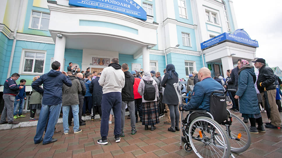 Около здания епархии собралось около ста человек, включая артиста шоу «Уральских пельменей» Дмитрия Соколова. Они подготовили вопросы для митрополита Екатеринбургского и Верхотурского Кирилла и потребовали, чтобы он вышел и ответил на них. В частности, они интересовались, почему их отлучили от церкви, просили провести поместный собор, а также потребовали от митрополита отчет о его деятельности за девять лет его работы.