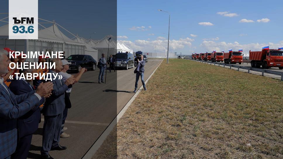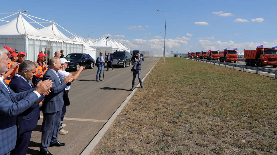 «Идеально ровная поверхность, прямо вот свежая-свежая, можно на болидах “Формулы-1” по ней ездить», — житель Крыма Алексей в разговоре с “Ъ FM” дал трассе «Таврида» самую лестную характеристику. Для гостелеканалов картинка и вправду удалась: сначала колонна «КамАЗов» с российскими флагами, потом — и сам президент. Он сначала облетел трассу на вертолете, а затем пересел на свой Aurus с крымскими номерами и с машиной сопровождения проехал сам несколько километров.