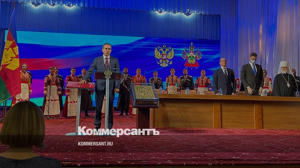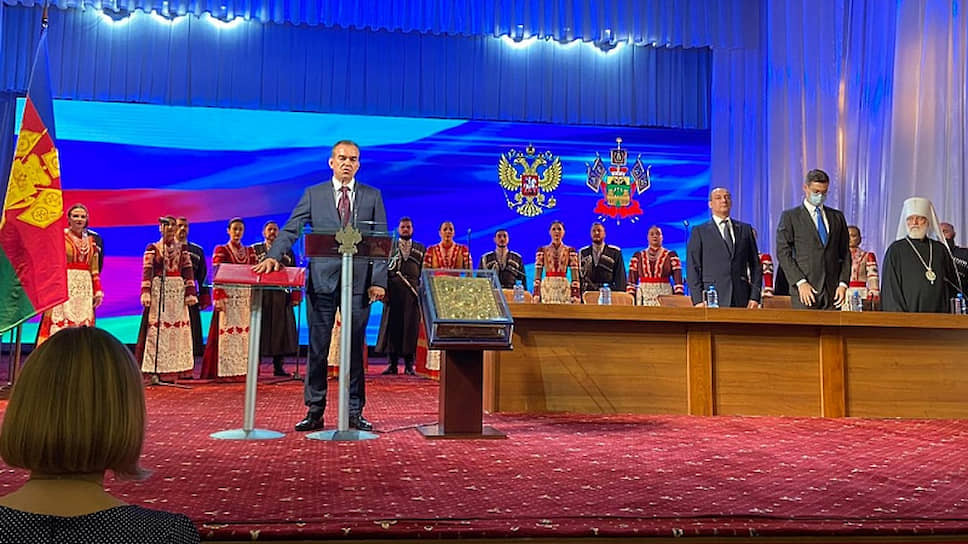 В Краснодаре избранный губернатор края Вениамин Кондратьев принес присягу и официально вступил в должность. Трансляция внеочередной сессии заксобрания края проводится на сайте администрации региона.