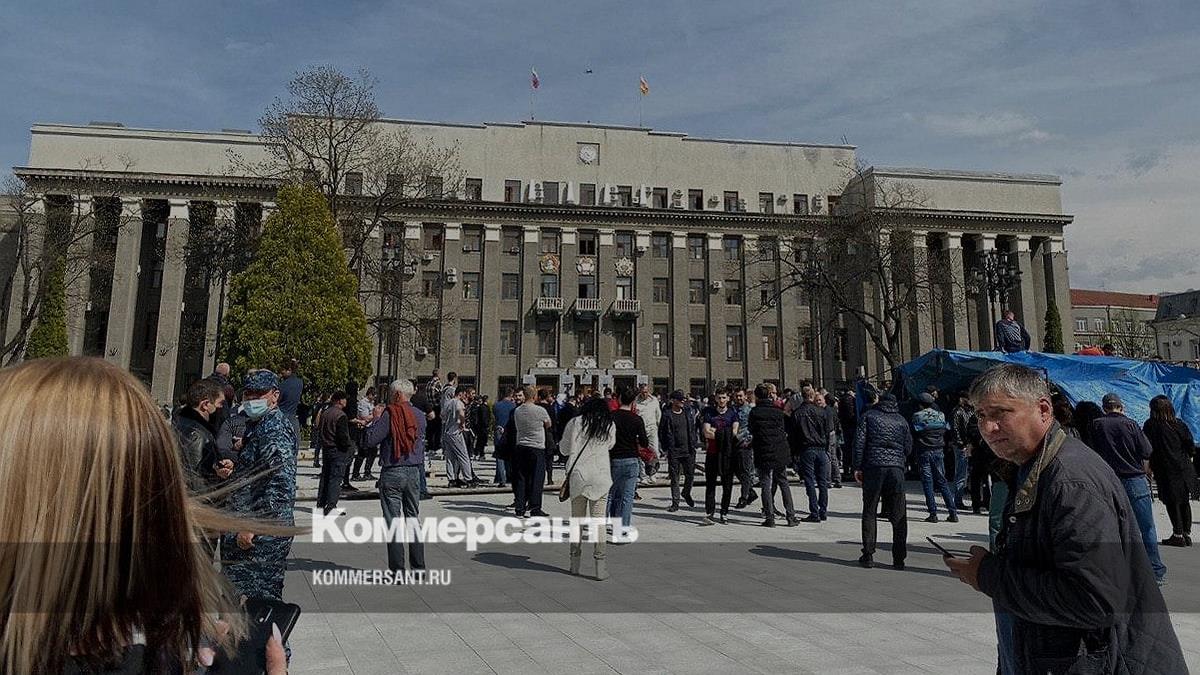 Глава Республики Северная Осетия—Алания Вячеслав Битаров (в центре) и участники митинга