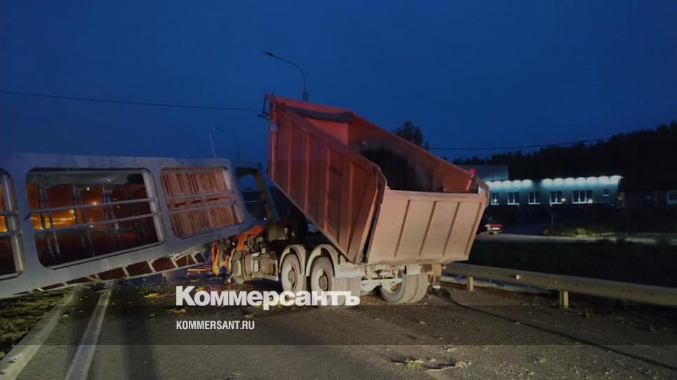 На участке федеральной трассы М-5 «Урал» на ул. Димитрова в Екатеринбурге обрушился пешеходный мост. Он упал на «КамАЗ», водитель которого погиб. В сообщении МЧС по Свердловской области указано, что грузовой автомобиль столкнулся с опорами моста из-за подъема кузова. В результате ДТП конструкция сошла с опор и упала на кабину «КамАЗа», сообщили в МЧС. В настоящее время данный участок дороги оцеплен сотрудниками ГИБДД, автомобили направляются в объезд.