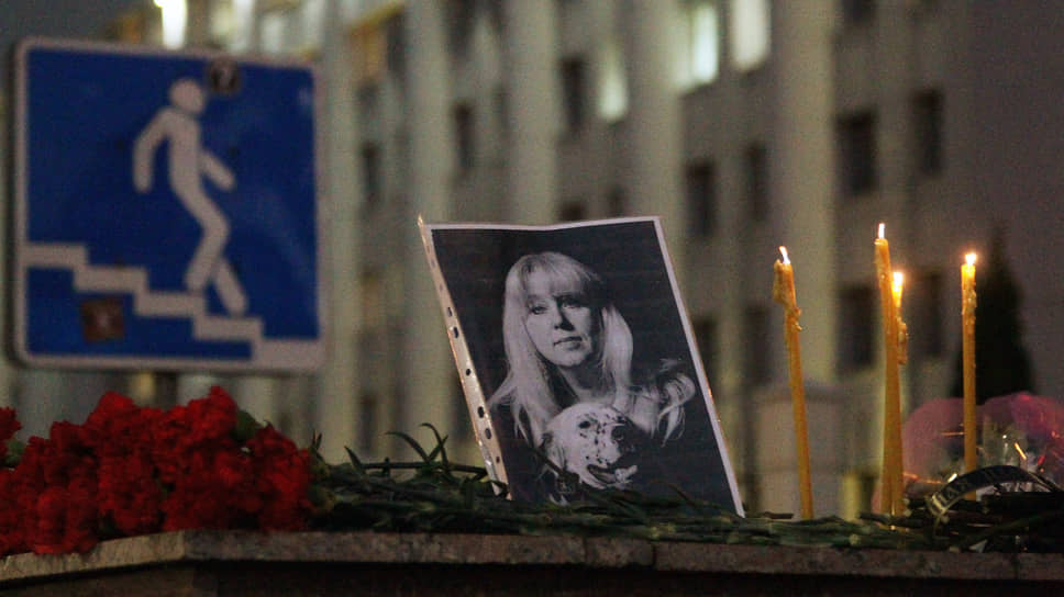 Цветы и свечи на месте гибели главного редактора издания Koza.press Ирины Славиной