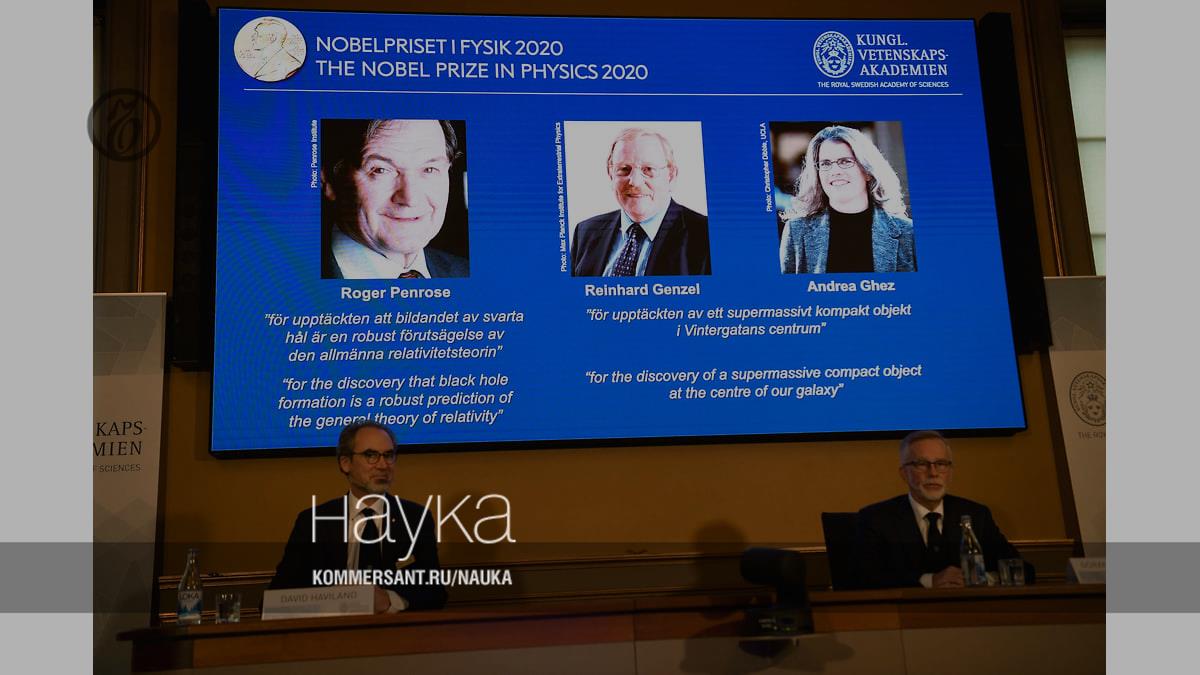 В Стокгольме назвали имена лауреатов Нобелевской премии по физике 2020 года. Это Роджер Пенроуз из Великобритании, Райнхард Генцель из Германии и Андреа Гез из США. Пенроуз получит половину денежного приза. Согласно официальной формулировке, он удостоился награды «за открытие, что образование черной дыры является надежным предсказанием общей теории относительности».