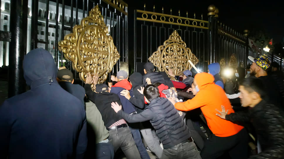 Оппозиция получила дополнительное подкрепление в ночь на вторник. Примерно в три-четыре часа ночи по местному времени митингующие направились к зданию Государственного комитета национальной безопасности страны (ГКНБ), чтобы освободить экс-президента страны Алмазбека Атамбаева. Напомним, что он обвиняется по нескольким статьям и уже приговорен к 11 годам тюрьмы по не самой тяжкой из них. Наиболее громкое из преступлений господина Атамбаева, причем совершенное публично,— это вооруженное сопротивление спецназу, который приехал его задерживать прямо в семейном особняке в селе Кой-Таш.