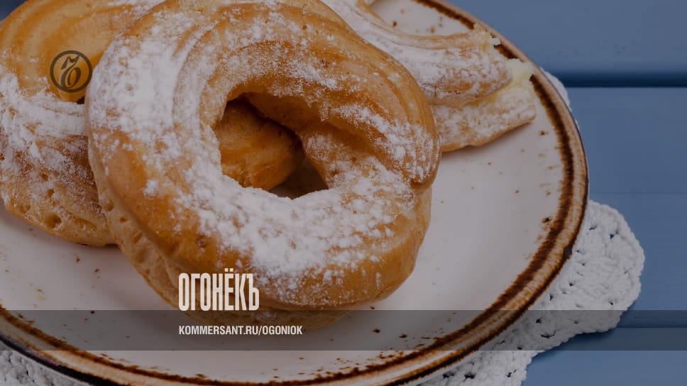 Чтобы собрать пирожное, сделайте на кольце горизонтальный разрез чуть выше середины, снимите верх. Заполните нижнюю часть кремом. Кондитеры делают это очень красиво: когда крем выдавливают из мешка, они ведут его широкой и высокой спиралью. А потом просто закройте крышечкой. Можно и не отрезать полностью верх, а сделать надрез и заполнить кольцо кремом из пекарского мешка. Но труда больше, а крема входит меньше. В любом случае пусть кольца постоят немного в холодильнике, крем от этого будет вкуснее. Осталось только присыпать сверху сахарной пудрой, как будто легким снегом, и пирожное можно подавать. Как и детские игры, старинные сладости и пирожные тоже возвращаются в моду. То ли потому что кольца всегда исчезают и появляются снова, то ли оттого что такие вкусные.
