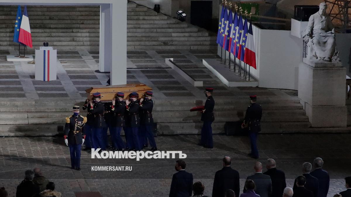 Гроб убитого учителя Самюэля Пати несут во дворе университета Сорбонны