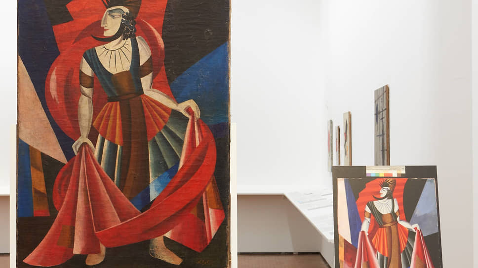 Выставка методично учит отличать фальшивки от подлинника — например, поддельную Александру Экстер от ее настоящего эскиза к «Саломее»