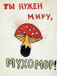 "Мухомор" — не только дежурное украшение детской площадки и галлюциноген наших лесов, но и одно из самых ярких и отвязных художественных явлений в отечественном современном искусстве. Группа, назвавшаяся именем веселого гриба, образовалась в московском андеграунде в 1978 году. Официальным днем рождения группы считается 24 марта: в этот день "Мухоморы" совместно нарисовали свое первое групповое произведение — картину "Охота индейца на орла". А 24 марта провозгласили Всесоюзным днем работника хеппенинга. "Мухоморы" — это художники Константин Звездочетов, Свен Гундлах, братья-близнецы Владимир и Сергей Мироненко и Алексей Каменский. В отличие от своих предельно серьезных и склонных к своего рода цеховой эзотерике старших коллег-концептуалистов, "Мухоморы" внесли в современное искусство бесшабашный хиппово-панковский дух. Одно из произведений "Мухоморов" называлось "Смерть мухам" — только морить докучливых насекомых художники собирались не тоской, которой и так было в избытке, а безудержным весельем. "Мухоморы" не только изготавливали художественные объекты и устраивали акции, но и записали квазироковый альбом с простодушным названием "Золотой диск", которое, как ни странно, вполне себя оправдало. Самиздатовский магнитоальбом стал настоящим хитом. Небезызвестный Сева Новгородцев гонял мухоморовские хиты в своей передаче "Посевы" на BBC — вместе с музыкой Лори Андерсон и прочих самых продвинутых на тот момент западных звезд. "Мухоморы" тогда вошли в пресловутый официальный список групп и музыкантов, запрещенных к исполнению в СССР — вместе с "Кино", "Аквариумом", Clash, Pink Floyd, Kiss и многими другими. Негаданная слава рок-кумиров оказалась для молодых художников фатальной — ими всерьез заинтересовались "искусствоведы в штатском". КГБ быстро расформировало новое художественное объединение, отправив художников в армию — несмотря на то что все они давно обзавелись освобождающими их от службы справками. Посвященная "Мухоморам" выставка в "ЕК АртБюро" сделана при участии фонда "Художественные проекты". В галерее можно будет увидеть мухоморскую живопись и графику, а также их фильмы — первые опусы отечественного параллельного кино, и конечно же, услышать "Золотой диск".