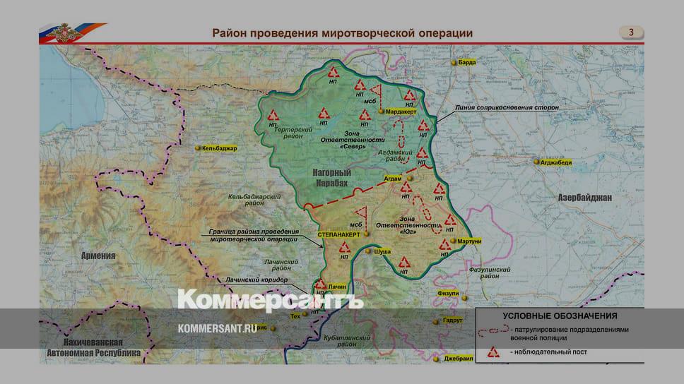 Всего вдоль линии соприкосновения и Лачинского коридора Россия выставит 16 наблюдательных постов. В Генштабе планируют завтра развернуть наблюдательные посты в зоне ответственности «Юг», где шли активные бои. Наблюдательные посты будут собирать информацию о нарушениях прекращения огня, поддерживать безопасность движения транзитного транспорта и пресекать противоправные действия против мирного населения. Миротворцы из России уже наладили связь с генштабами Азербайджана и Армении.