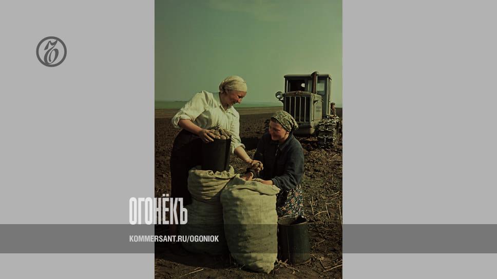 В 1956 году «Огонек» выпустил специальный «сибирский» номер — о том, как большая советская страна в едином порыве покоряет дальние края. К примеру, на этом фотоснимке – уроженки Верхней Хортицы Запорожской области Алла Алещенко и Валентина Токмак. Вот только картофель они сажают не у себя на малой родине, а на Алтае, в Поспелихинском совхозе. На целину они отправились большой компанией — обычное дело для того времени! А уж на новом месте их так и прозвали: «Запорожская коммуна».