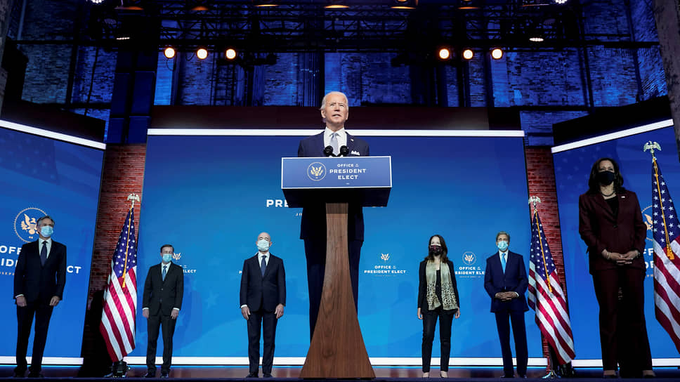 «Наша команда — команда за моей спиной — готова действовать»,— провозгласил Джо Байден со сцены в городе Уилмингтоне. У него за спиной стояла «великолепная шестерка» — главные назначенцы будущей администрации