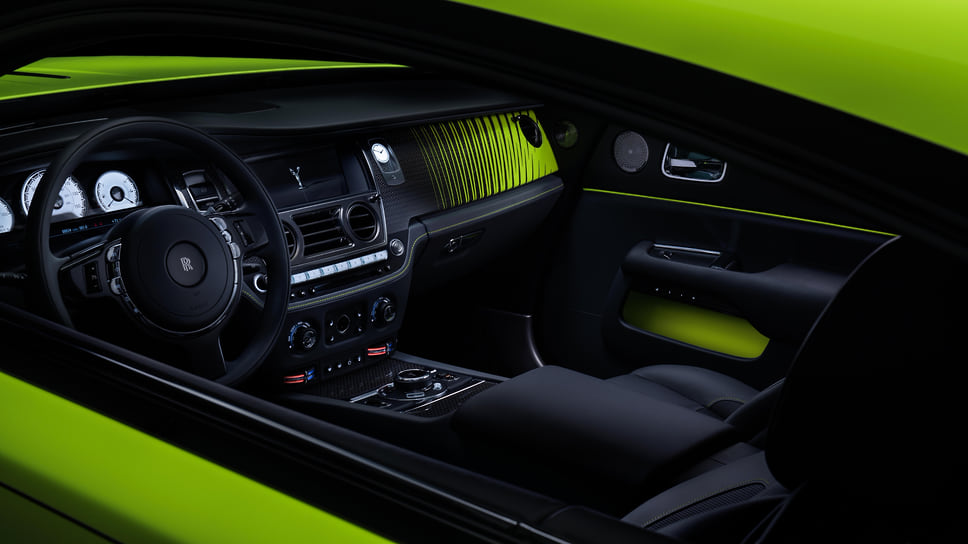 Купе Wraith получило цвет Lime Rock Green, созданный под впечатлением от австралийской древесной лягушки. Салон обтянут кожей Scivaro Grey с акцентами цвета Lime Rock Green в виде прострочки и окантовки кресел, а на передней панели появились элементы в тон кузова.