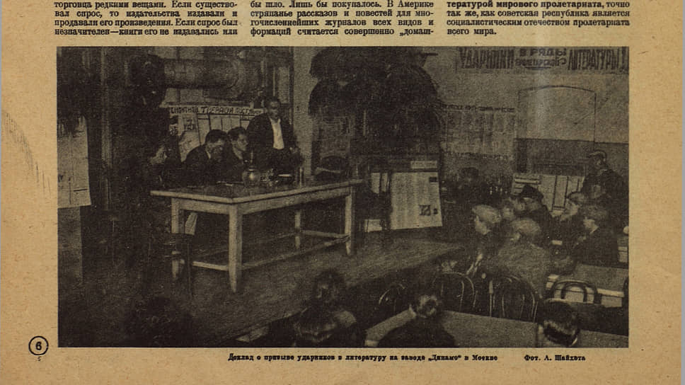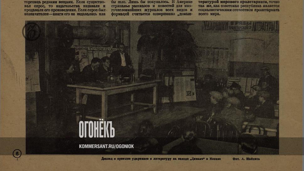 90 лет назад «Огонек» писал о «широкой кампании, развернутой Роcсийской ассоциацией пролетарских писателей, по вовлечению лучших ударников в литературу». Ради обсуждения этого вопроса на столичном заводе «Динамо» было проведено специальное собрание. «Советская литература только строится, как и все остальное в СССР. Ее значение растет не только для трудящихся СССР, но и для трудящихся всего мира,— писал журнал.— Уже сейчас по тому интересу, какой наблюдается во всех странах к молодой советской литературе, можно смело предположить, что в будущем этот интерес значительно возрастет», а значит, надо удовлетворить возросший спрос. Как это сделать? Призвав «к перу» новых авторов. Мол, раньше «литература во всех странах делалась "самотеком"», а положение писателя сводилось к положению торговца редкими вещами: был спрос — издавали, нет — так нет.