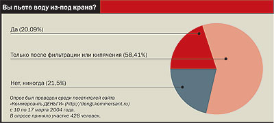 По словам специалистов компании "Дом воды 2000", главное требование к скважине заключается в том, что месторождение должно быть абсолютно защищено от попадания загрязненных поверхностных вод, чтобы "каждая капля воды проходила естественные песчаные и известняковые фильтры". По мнению заместителя гендиректора компании "Роса" (это самый крупный в России частный центр, занимающийся исследованием качества воды) Александра Дъячкова, артезианские воды Московской области "не самые благополучные в геологическом плане". "Во многих районах Подмосковья скважины имеют повышенное содержание бериллия, зачастую специалисты находят и избыток фтора,— говорит господин Дъячков.— Может быть такое, что в проверенной нами скважине вода насыщена железом и сероводородом, а буквально в ста метрах протекает абсолютно чистая вода". Такое состояние подземных вод Подмосковья Александр Дъячков объясняет "своеобразным геологическим строением земли и плохой защищенностью источников слоями глины". Впрочем, представитель "Росы" уверен, что большинство столичных производителей используют такие технологии очистки, которые "ликвидируют избыток определенных химических элементов".