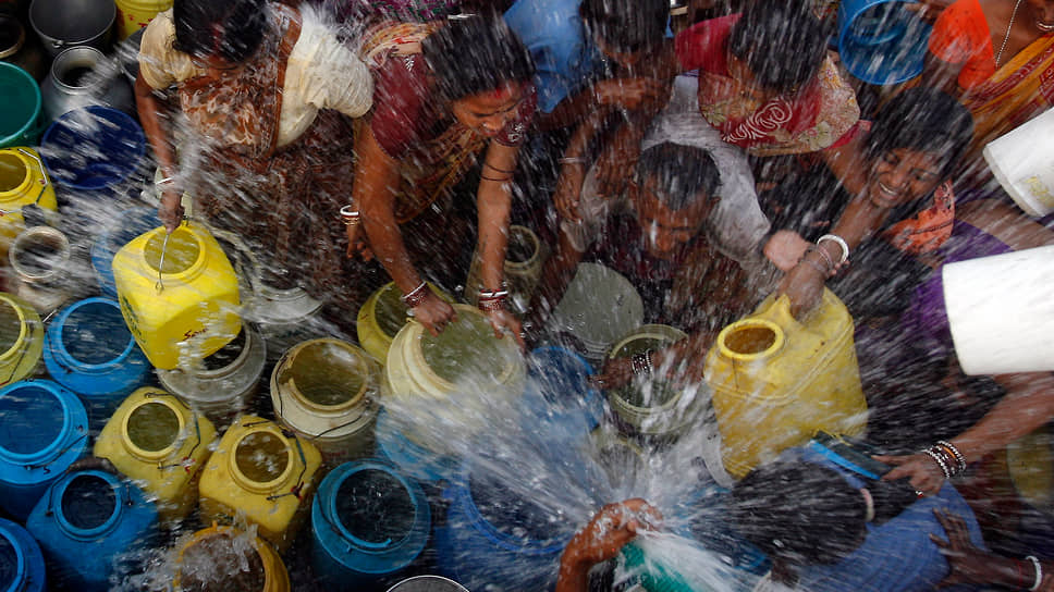 Часто именно густонаселенные регионы мира страдают от нехватки воды сильнее всего (на фото — жители трущоб Калькутты, пришедшие за водой)
