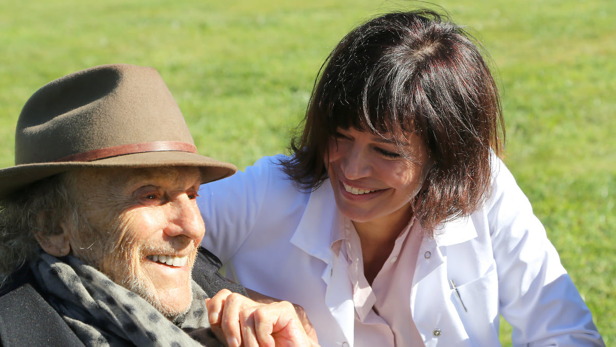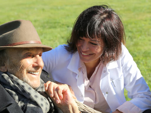 Зрелище, прямо скажем, не для слабонервных. Если Эме выглядит пожилой, но обаятельной и ухоженной женщиной, то Трентиньян не гримирует ни морщин, ни старческой мимики, и временами даже страшно становится, когда он изображает симптомы деменции: играет ли актер старость или старость играет его? Так или иначе, когда Анна навещает Дюрока в доме престарелых, он не узнает ее, но как бы заново влюбляется, прокручивая в снах историю своей большой любви, пережитой полвека назад в Довиле и кончившейся разрывом. Герои и в нынешнем состоянии вырываются из богадельни, чтобы совершить тур по местам боевой славы, то есть в тот же Довиль, в тот же отель «Нормандия», где разыгрывалась ставшая знаменитой на весь мир любовная сцена. Правда, когда в кадре помимо старенького Citroen Анны появляется пистолет, мы понимаем, что это скорее дедушкины сны, чем реальность.