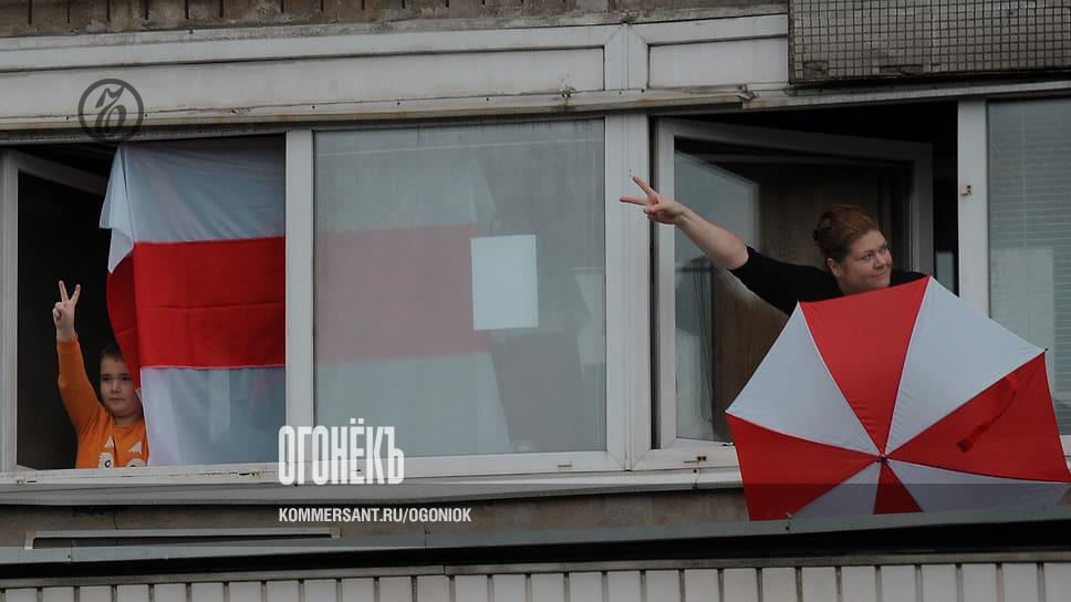 Силовики прибыли без промедления, потому что с недавних пор в Белоруссии флаги, плакаты и прочие предметы, размещенные на окнах и балконах, в подобной цветовой гамме приравниваются к несанкционированным пикетам. За них люди уже получали штрафы на приличные суммы и даже попадали на сутки в СИЗО. Но вот чтобы хозяин квартиры сам приглашал к себе милиционеров, дабы избавиться от «опасной» символики,— такое впервые.