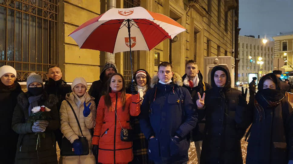 В Петербурге на очередной акции солидарности с Белоруссией, которая ежедневно проходит у посольства страны, полиция провела задержания. Как рассказал “Ъ-СПб” представитель белорусского землячества в городе Владимир Драгун, в 1-й отдел полиции на улице Якубовича увезли около 14 человек.